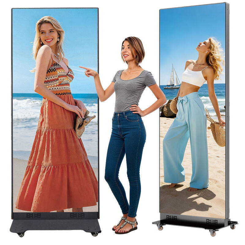 La pantalla LED tipo póster soporta múltiples métodos de fijación, como pantallas LED de pie/pantallas LED de pared/pantallas LED tipo póster suspendidas, y otras formas, adecuadas para escenas interiores temporales y semi-fijas.